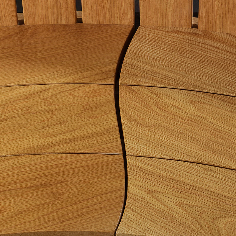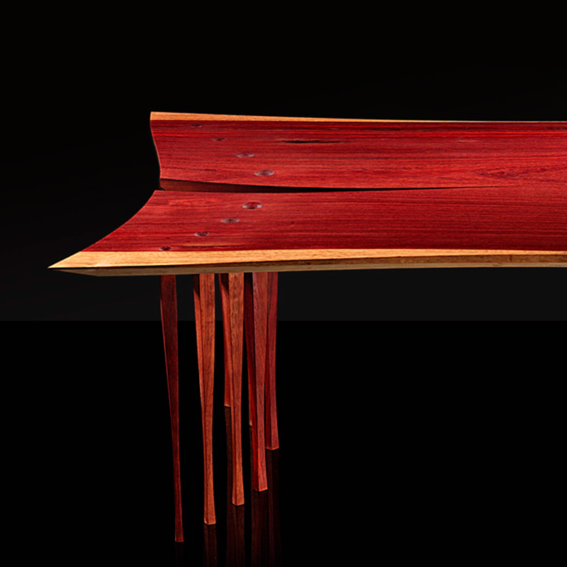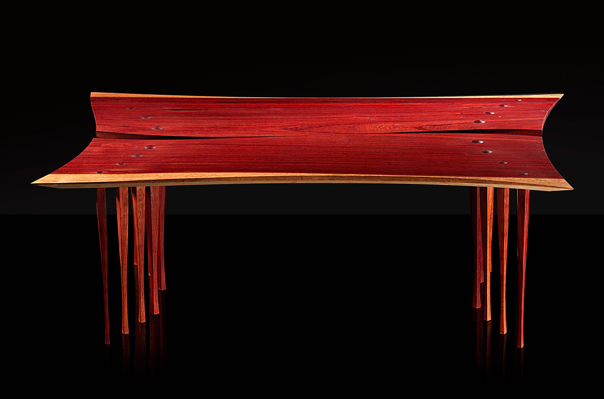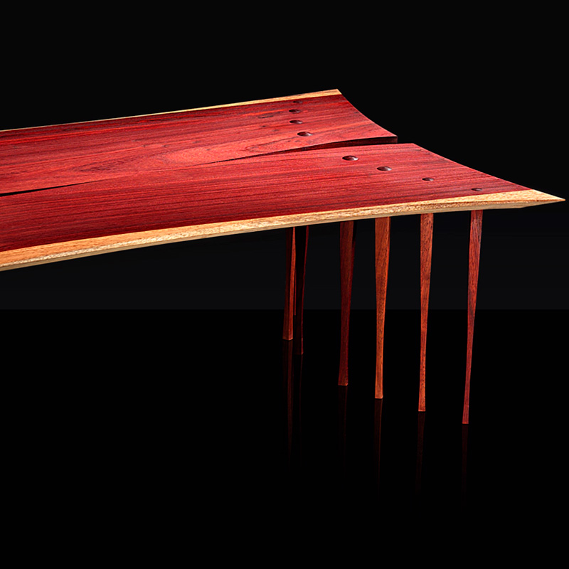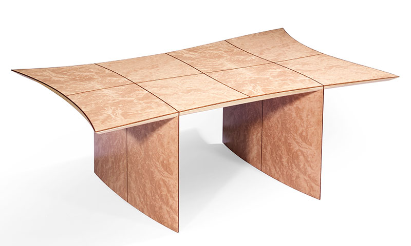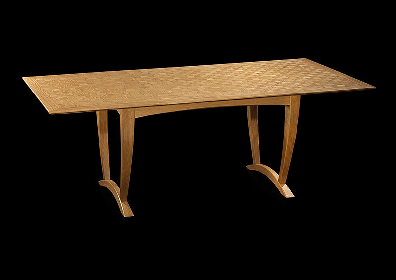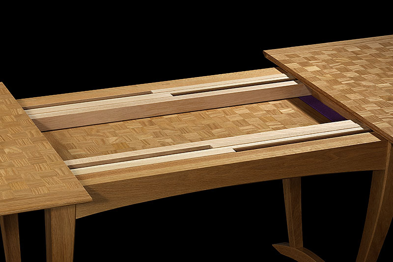 Commissioned by Philip McGough. 700mm high, 685mm wide, length 1675-2175mm."I commissioned an expanding 8/10-seater dining table from Marcus. I was impressed with his ability to remain faithful to my vision and at the same time bring his own imagination and creativity to the project. In addition, his craftsmanship was outstanding. The result is practical furniture of finesse and beauty."